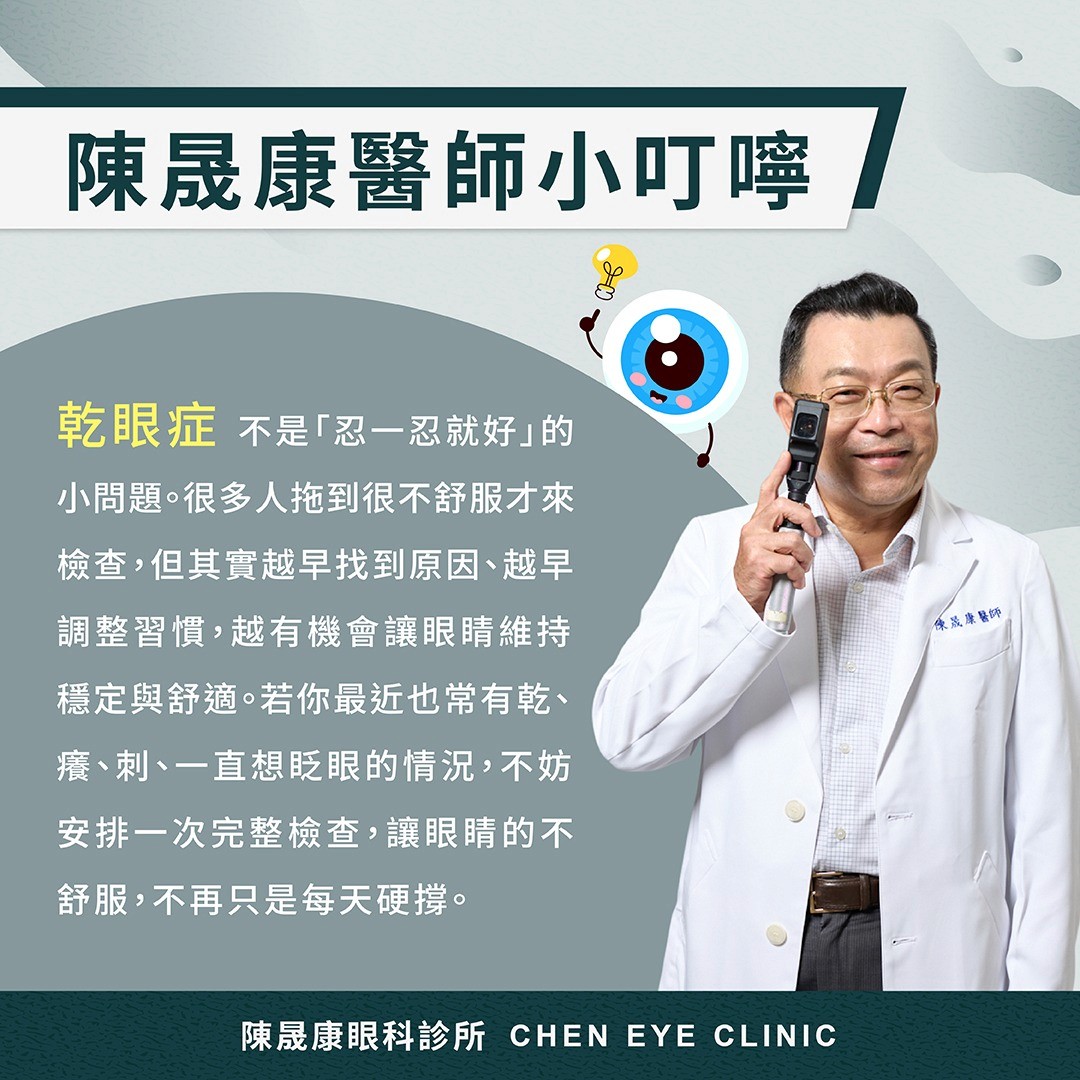 如果你已經常常覺得眼睛乾、刺、紅,或視線忽清忽糊,而且休息後仍反覆發生,就不建議再單靠自己猜測原因。眼科醫師可透過淚液量測、眼表檢查、瞼板腺評估等方式,找出是缺水型、缺油型,還是混合型乾眼,再安排合適的治療方向。